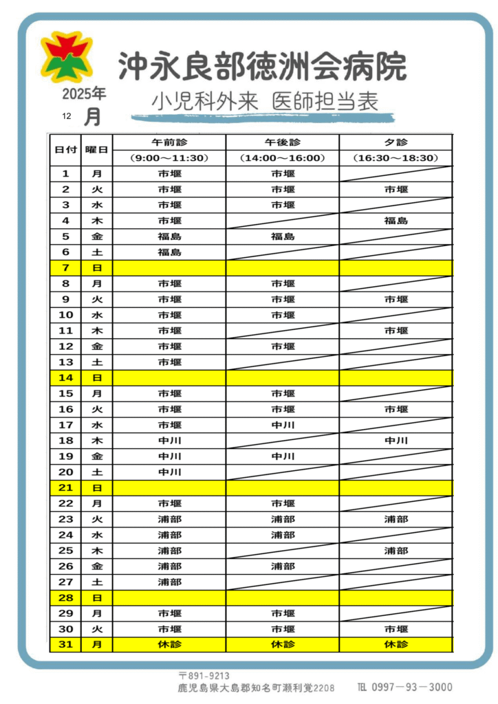 | 午後診療 (14:00~15:00) | ○ | ○ | 健診 | 健診 | ||