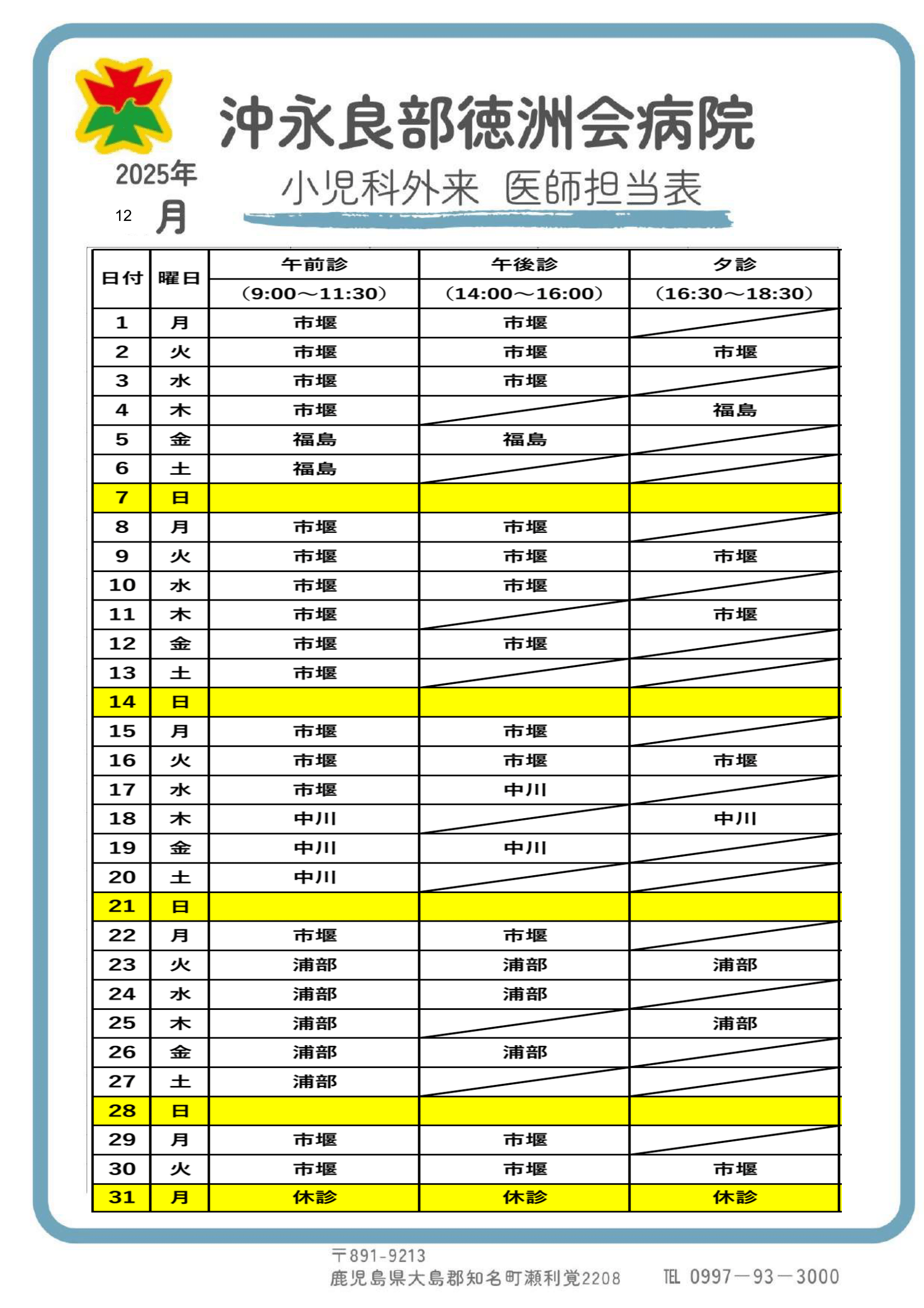 ※ 診療予定については、変更がある場合がございます。医師日程表をご確認いただくか、お電話にてお問い合わせください。